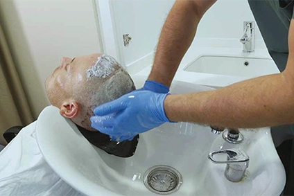 Special care products after a hair transplantation treatment.